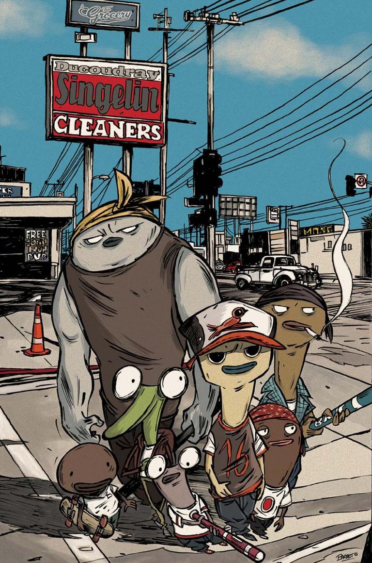 Dans les 4 tomes édités entre 2011 et 2016 aux éditions du Label 619, on suit l’histoire d Elliott Friedman, petit personnage attachant, fils de l’épicier venant tout juste d’ouvrir une Grocery au coin de la rue. Elliott est un gosse, une tronche à l’école, mais vite embringué dans les histoires de deal d’une petite bande qui vend à quelques pas du magasin. Il faut dire que ce sont eux ses potes, notamment Sixteen le « boss ». Dans le quartier, c’est comme une fatalité, la violence te colle à la peau, surtout quand il y a les autres bandes comme les Maras et les White supremacist qui sont dans les parages, pour une histoire de contrôle de territoire et de business.